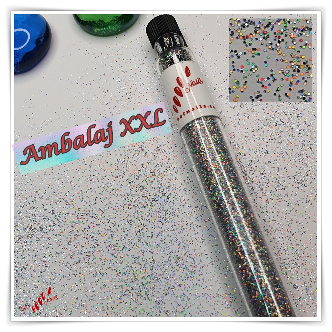 Sclipici Glitter HotNails HN956 Silver Multicolor SUPERFIN Ambalaj XXL