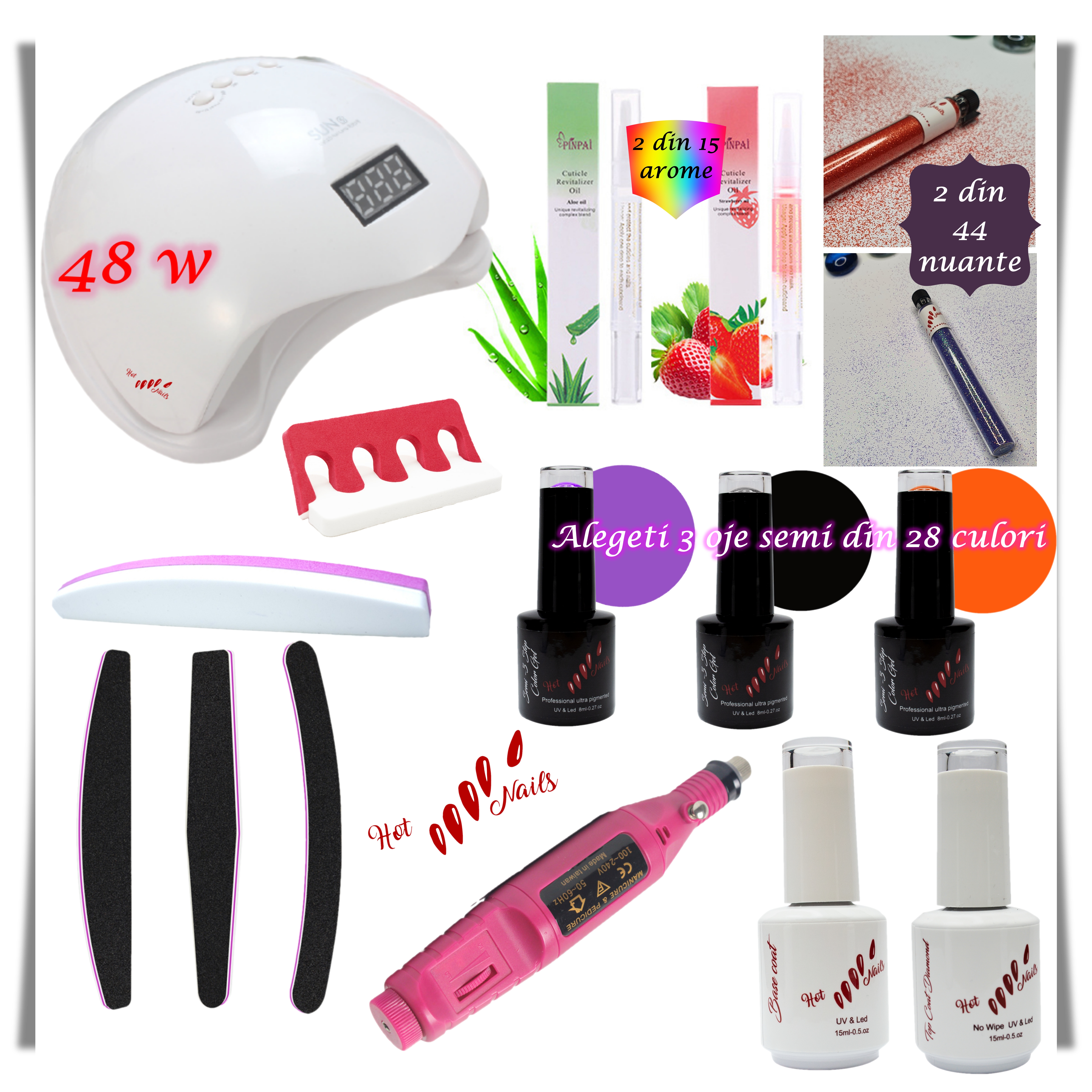 Fie ca esti la inceput de drum in meseria de manichiurista , fie ca doresti sa iti faci singura unghiile cu oja semipermanenta - HotNails te ajuta sa iti indeplinesti dorintele cu oferte de nerefuzat.