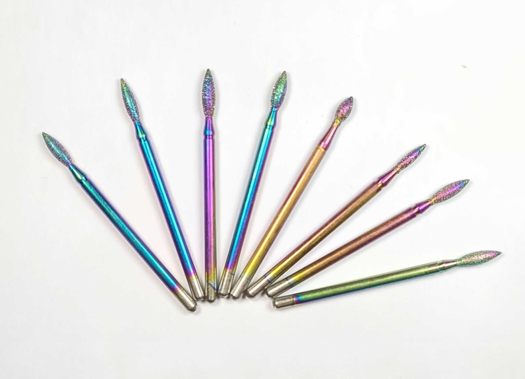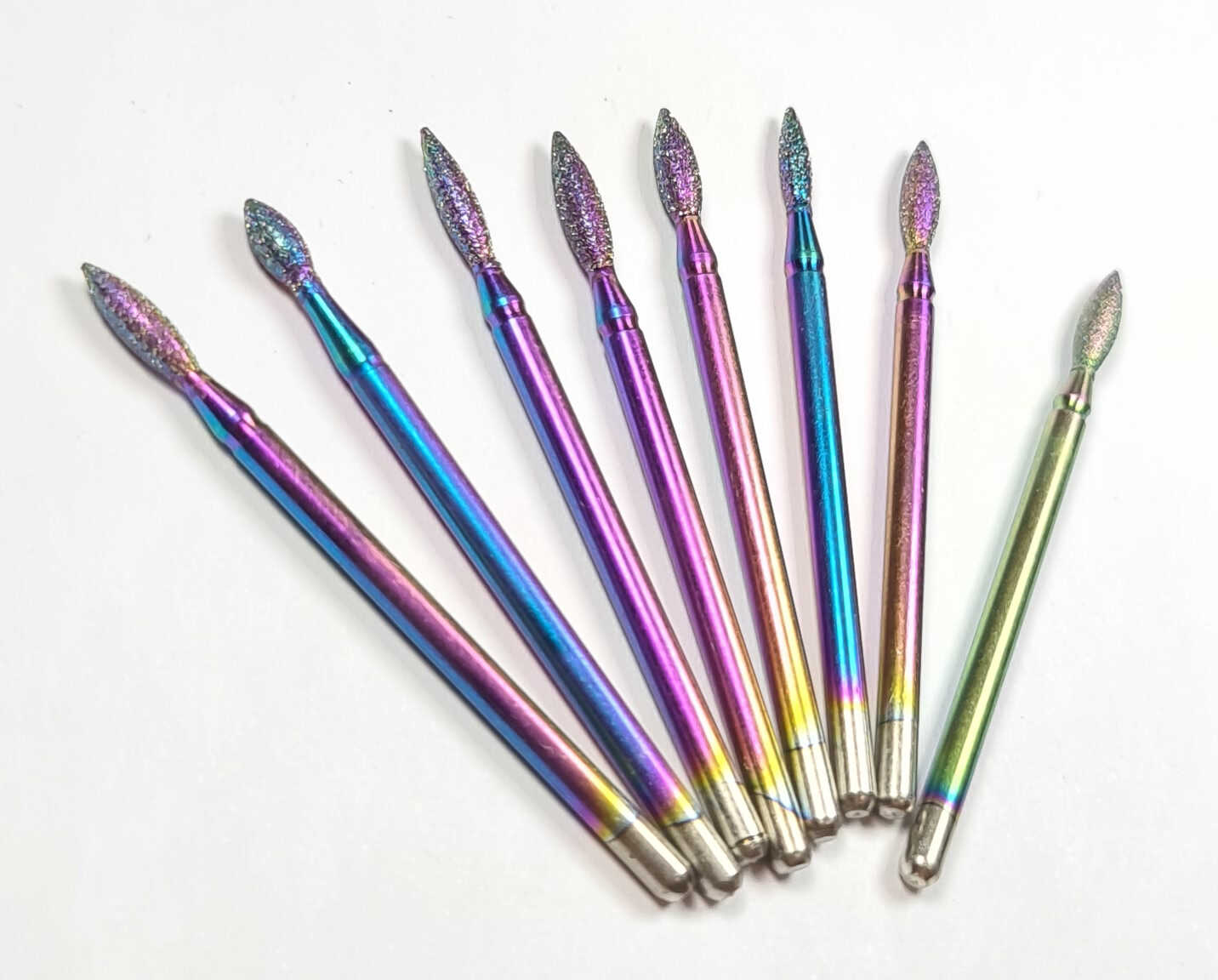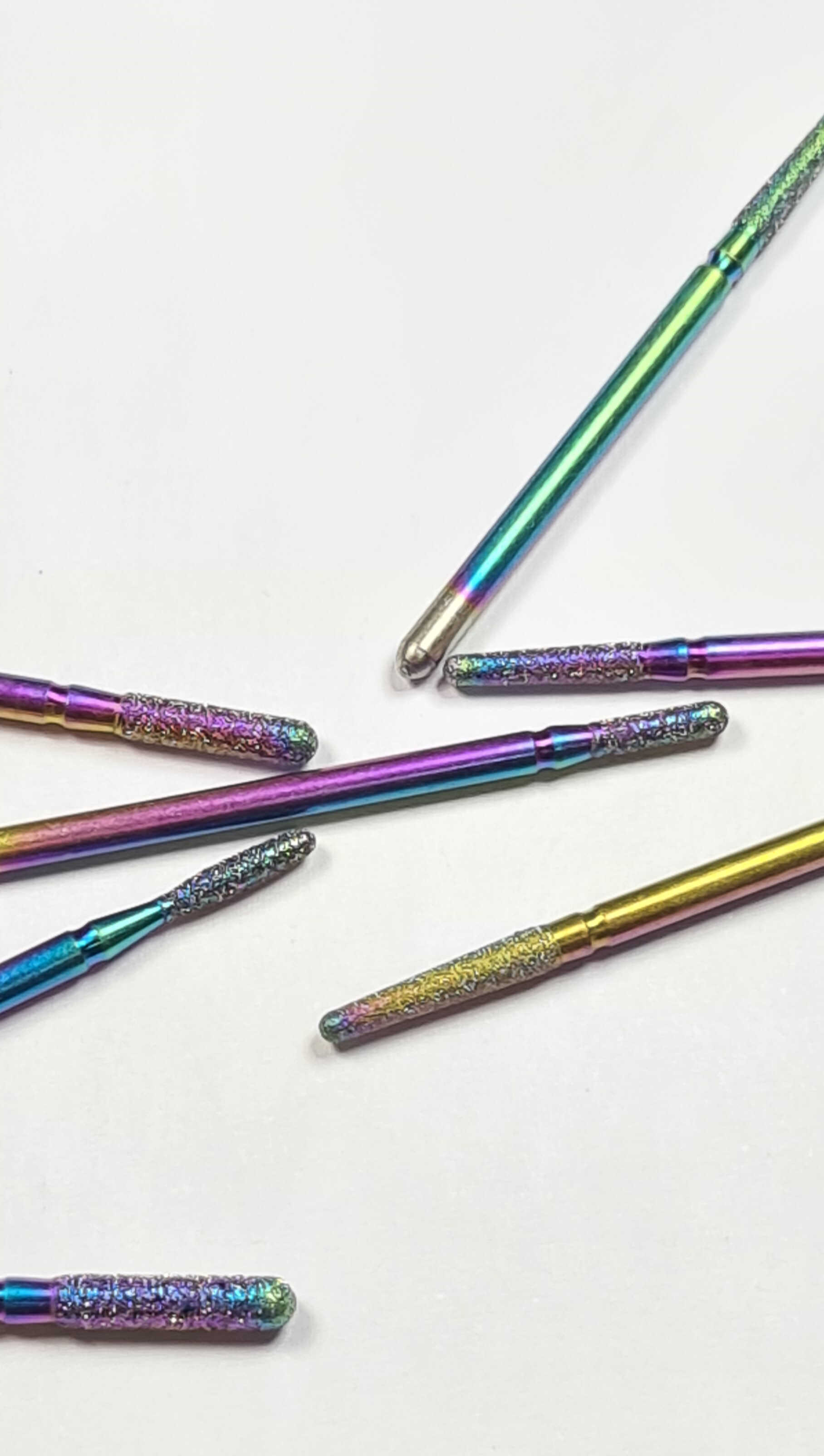 Caracteristici: capete cu praf de diamant– calitate net superioara fata de frezele clasice, rezistenta indelungata, stabilitate buna, curatare foarte usoara, forme special concepute pentru toate formele de unghii , 30 tipuri diferite de varfuri, sunt compatibile cu orice model de freza avand dimensiune standard , design revolutionar—culori Raibow, manipulare foarte precisa, potrivite pentru ambele sensuri de rotatie ale frezei electrice.
