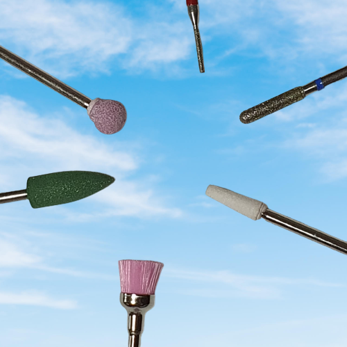 Cele 2 bucati din set au 2 forme: Cilindru subtire culoare Albastru / duritate Medie si varf subtire culoare Rosu / duritate Fina. Capetele sunt folosite pentru manichiura cat si pentru pedichiura. Functioneaza la viteza de rotatie intre 1 000—50 000 rotatii pe minut.