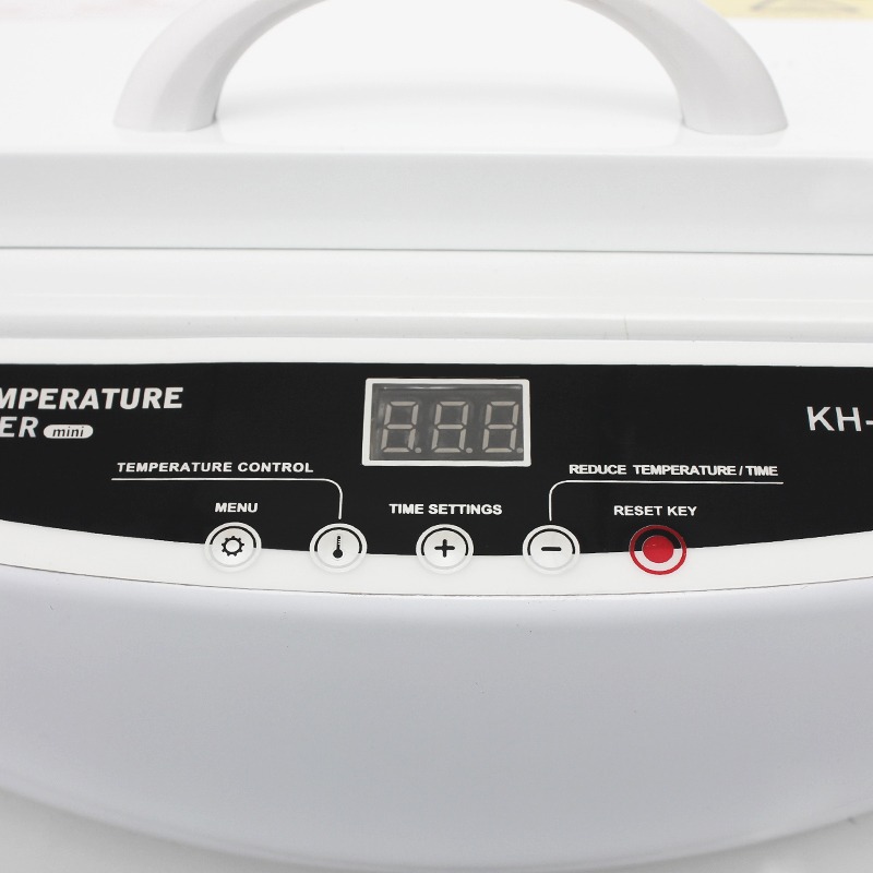 • Control butoane touch – afisaj electronic. Reglare temperatura din 5 in 5 grade Celsius. Timpul se modifica din 5 in 5 minute. Setati temperatura si timpul dorit – asteptati sa clipeasca de 5 ori dupa care aparatul intra in mod automat in procesul de sterilizare.